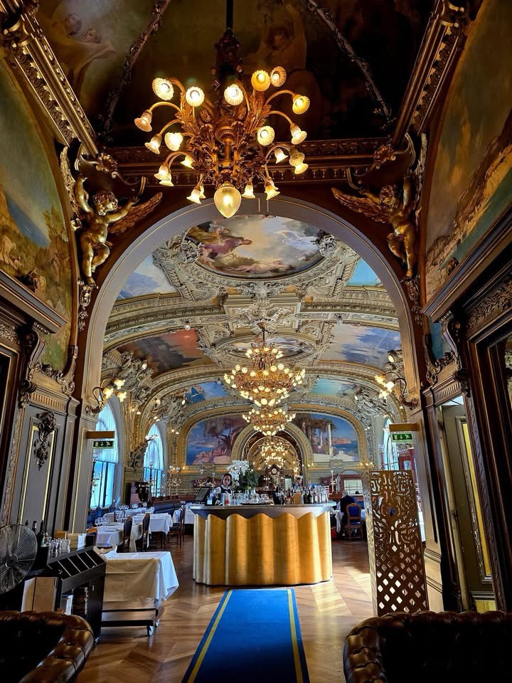 In this echo of another age, even a delay becomes something almost deliberate – an invitation to linger rather than rush. Opened in 1901 for the Universal Exhibition, Le Train Bleu is a showcase of Belle Époque grandeur and Beaux-Arts theatricality… painted ceilings, sculpted cherubs, and a setting that once welcomed travellers bound for the Riviera, Cairo, and Constantinople.