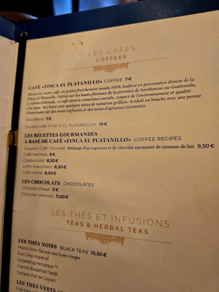 One morning began at Bacha Coffee on the Champs Élysées, a café so polished you feel underdressed the moment you step inside. Chandeliers, lacquered wood, immaculate black-and-white floors… the sort of place where asking for a straightforward coffee feels like using the wrong cutlery.