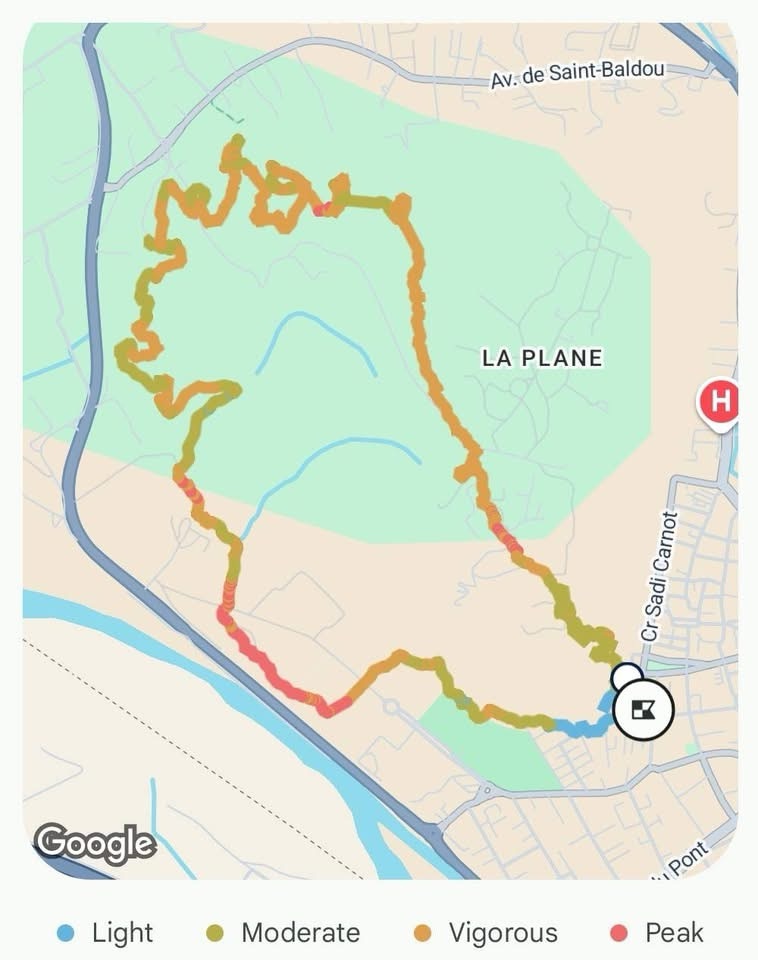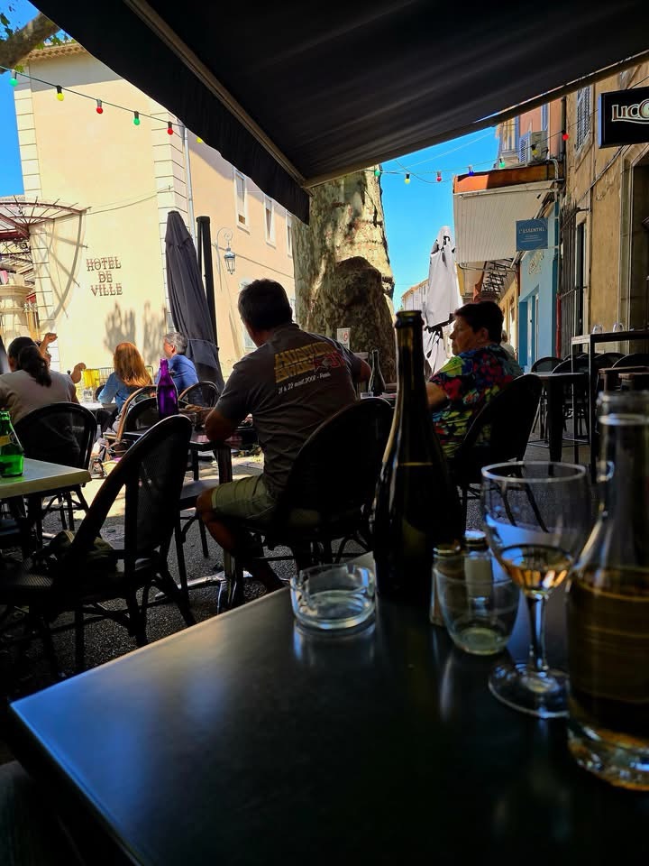 After nearly ten kilometres and a fair bit of sweat, we descended into town – dusty, satisfied, and ready for something restorative. I dropped Glo off at home for a well-earned nap in a cool corner, then made my way solo to Bistrot Ô Méryl, tucked under the plane trees by the Hôtel de Ville.
