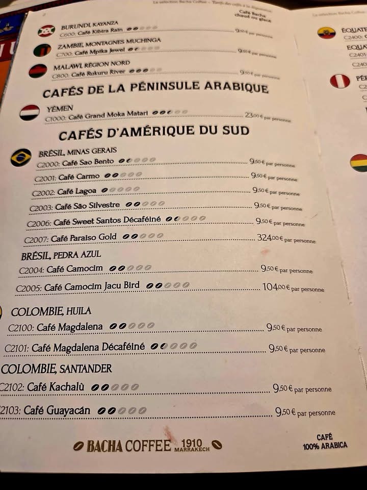 The menu resembles a geography exam. Brazil, Yemen, Colombia, Burundi on just one of a dozen pages. All reasonably priced at a mere €9.50 – until you reach the Café Paraíso Gold at €324.